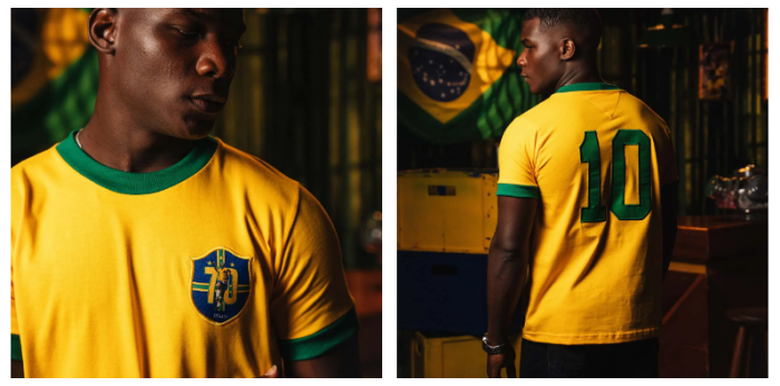 O mais interessante é que não se trata de um caso isolado. O trabalho do Eduardo é construído sobre releituras históricas com alto valor esportivo e também de moda, algo que dialoga diretamente com o legado de Pelé e com o peso simbólico da nossa camisa. E talvez seja por isso que esse exemplo seja tão importante dentro dessa discussão toda: quando a criação nasce do entendimento real da cultura, ela não precisa forçar conexão, ela simplesmente acontece.