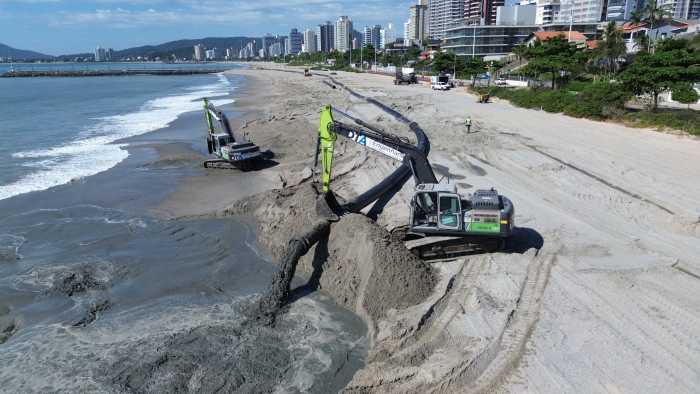 Divulgacao A megaobra de alargamento da faixa de areia da Praia Central de Balneário Piçarras foi oficialmente concluída na manhã desta sexta-feira (10). O último bombeamento ocorreu por volta das 11h, marcando o encerramento de uma das maiores intervenções já realizadas na orla do município.