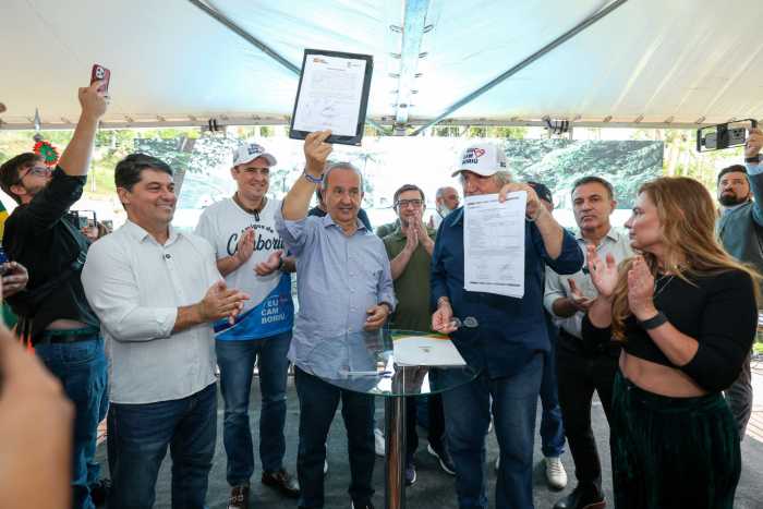 Divulgacao O governador Jorginho Mello assinou nesta segunda-feira, 13, a autorização de convênio para a obra da avenida Osmar Anastácio da Silva, conhecida como Estrada Geral do Morro do Encano. A via liga os municípios de Camboriú e Itapema. Na sequência do ato foi assinada a ordem para a licitação, por parte da prefeitura.