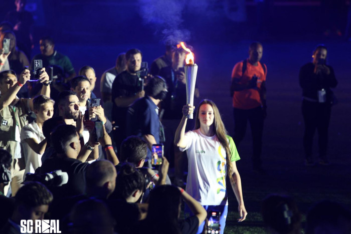 O ex-zagueiro Neto, sobrevivente da tragédia, conduziu Lorenzo até a pira olímpica, para acendimento do fogo simbólico.