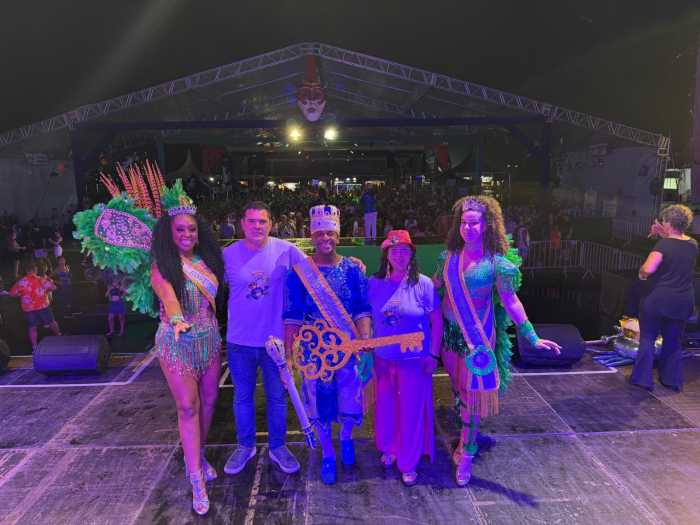 “Fico muito feliz e honrado. A folia está aberta até terça-feira, com muita festa e muito amor”, declarou o Rei Momo, Bruno Cristopher.